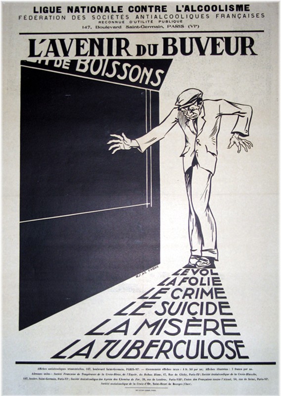 Drukkenskapens vei. Plakat utgitt av Ligue Nationale Contre L'Alcoolisme