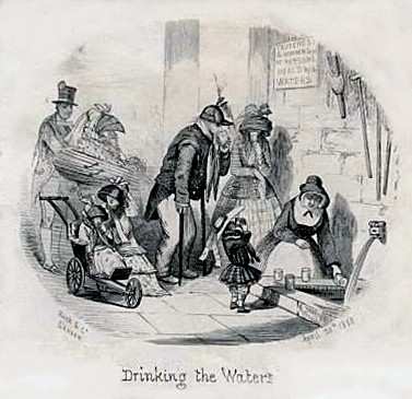 ![]() Drinking the Waters. Utg. av Rock & Co London 20th April 1855. 80 x 70 mm. |