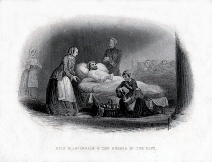 James Charles Armytage ( 1820-1897): Miss Nightingale & The Nurses in the East, stålstikk, England ca 1860.170x 110 mm. |